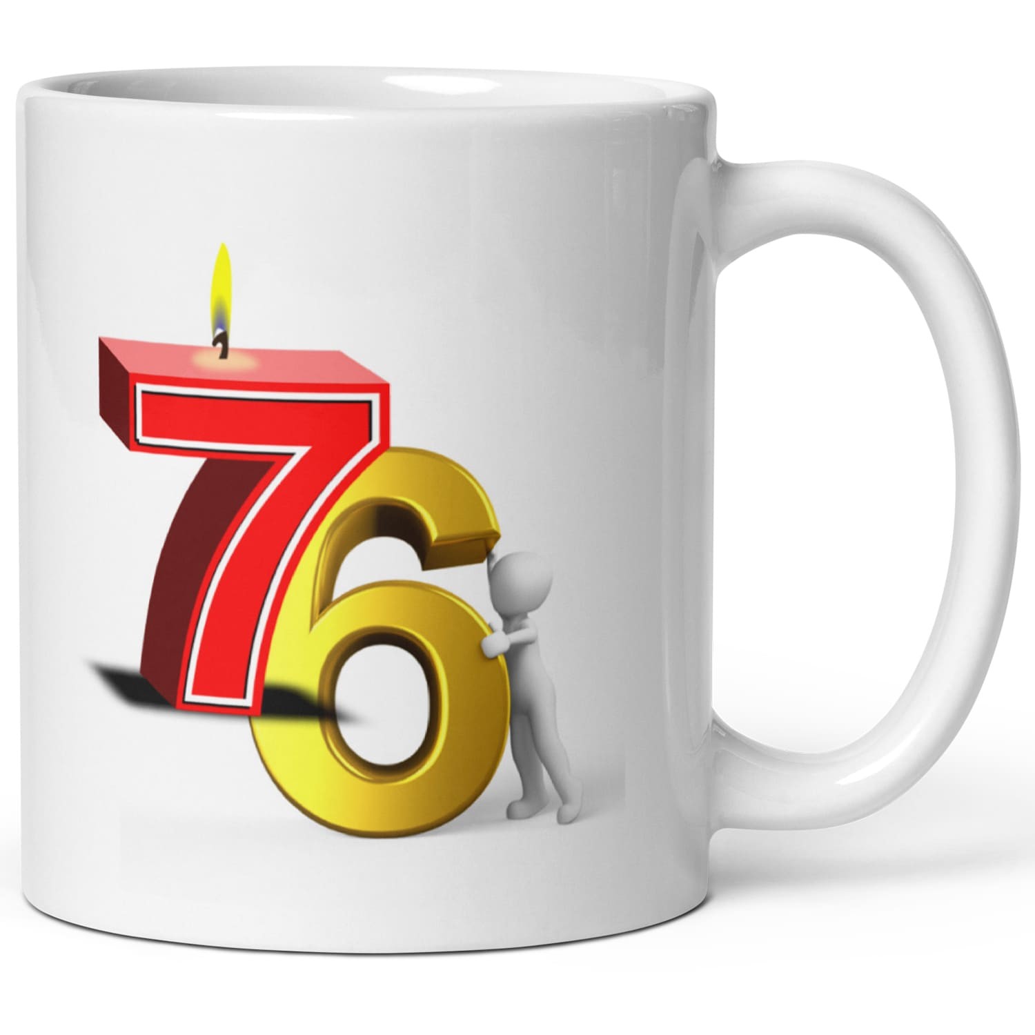 Le recto fait sourire par l’effet d’inachevé et la chute malicieuse, le verso signe le thème avec un 77 iconique. On lit, on retourne, on rit. Le mug devient un petit accessoire de scène pour les photos, un prétexte à trinquer et une manière légère de dire bravo pour ce bel âge.