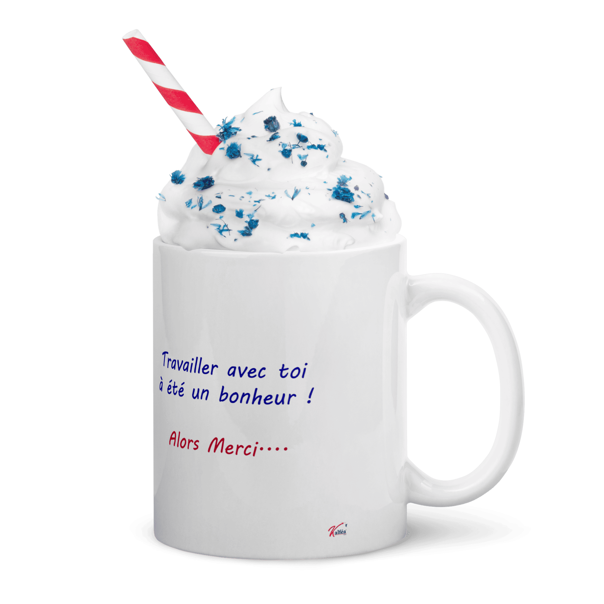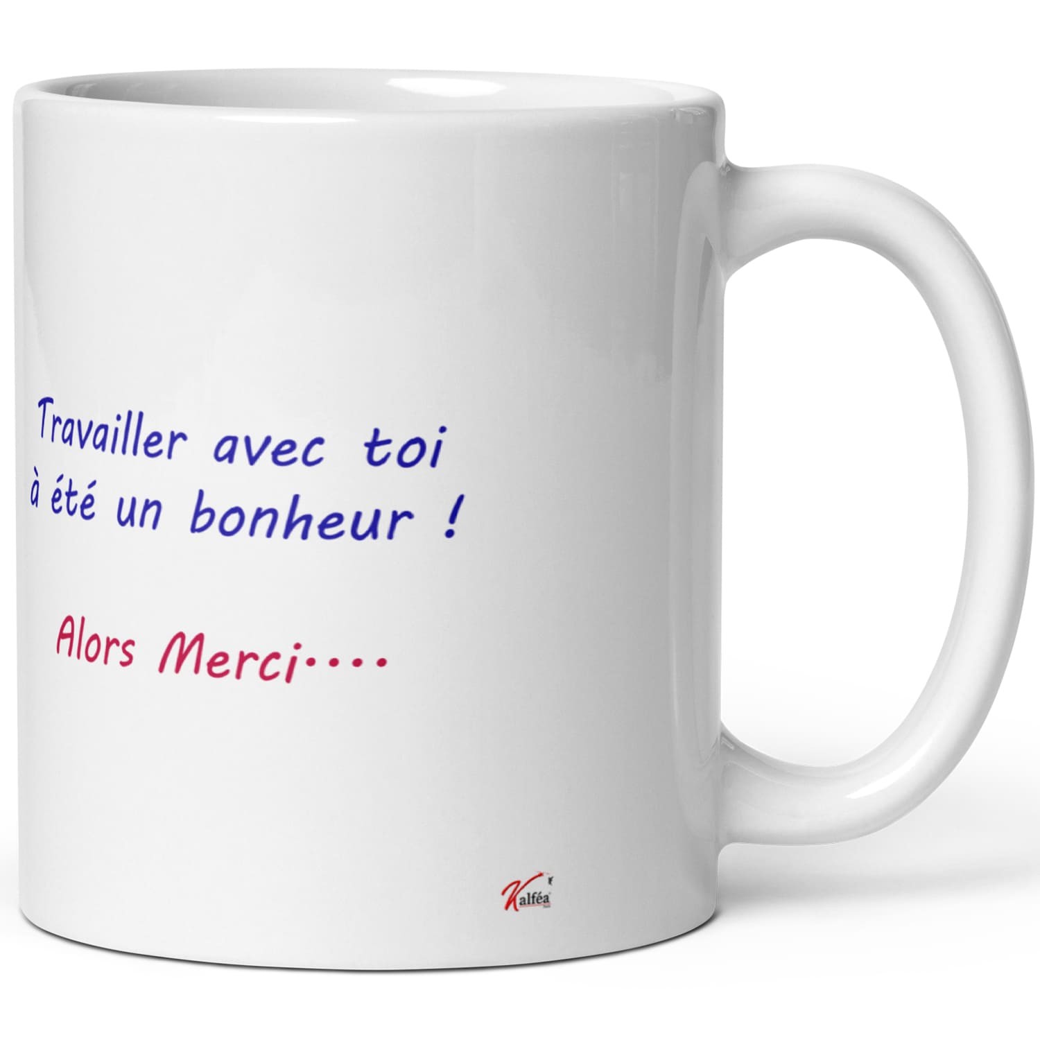 Le recto fait rire, le verso remercie. Ce duo de messages raconte vos années partagées mieux qu’une carte. Ce mug devient un repère affectif, un symbole simple des liens créés au fil des projets, réunions et pauses. Une vraie idée cadeau pour dire tu vas nous manquer sans dramatiser.