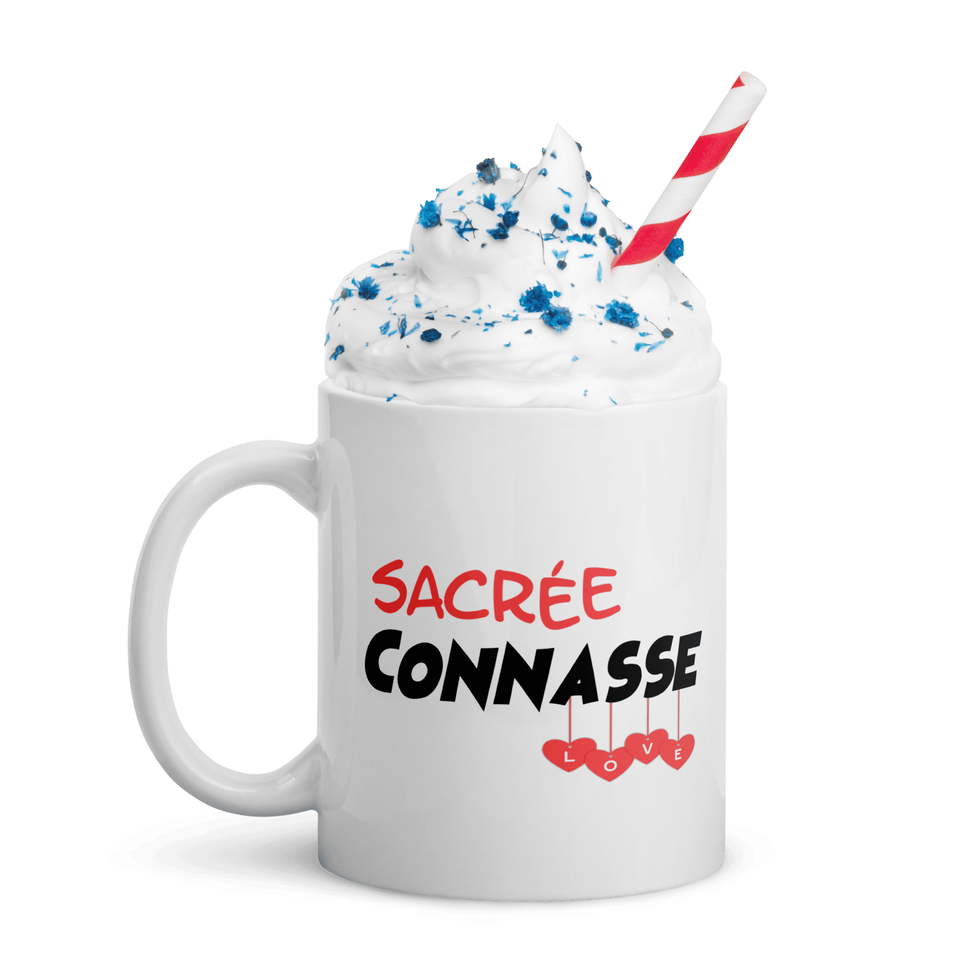 Ce mug drôle et amoureux s’adresse à toutes les femmes qui assument leur caractère avec fierté. L’inscription "Sacrée connasse" mêle humour et affection : c’est une manière amusante de dire « tu m’agaces, mais je t’adore ». Ce ton à la fois taquin et bienveillant fait tout le charme de ce modèle.